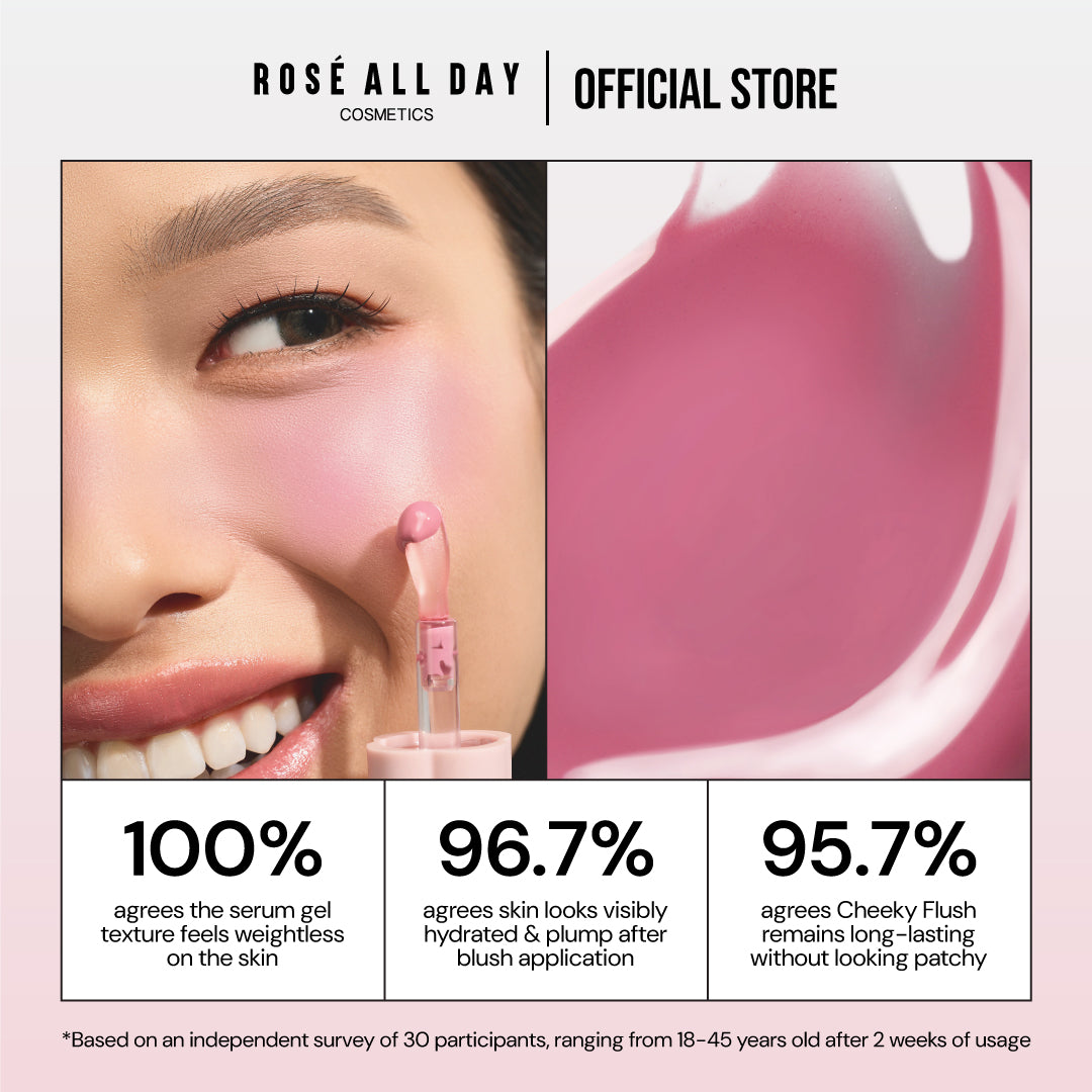 Blush up your year with Cheeky Flush Liquid Blush! A liquid blush with a lightweight serum gel texture, with medium pigmentation and a satin finish. Powered with Watermelon Extract & 3X Vitamin to give back hydration and nourishment to the skin. Formulated with Film Former for an even & long-lasting fresh wash of colors on your cheeks!