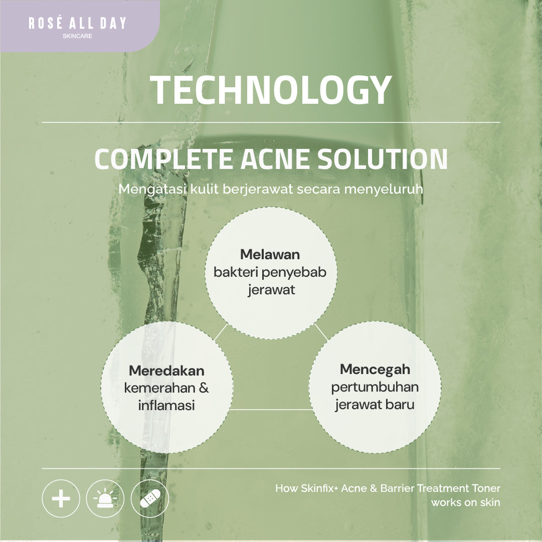 Toner untuk kulit mudah breakout serta berjerawat yang diformulasikan dengan 1% Microbiome dan 5% Centella Water. Bekerja dengan formula 3 Complete Acne Solution yang ampuh dalam merawat keluhan jerawat, mempercepat pembaharuan kulit, mencegah jerawat kembali lagi. Dilengkapi dengan Aqua Mint Extract untuk kesegaran menyeluruh.